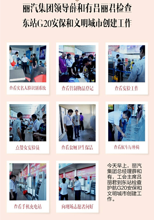 今天上午,麗汽集團總經理薛和有、工會主席呂麗君到東站檢查護航G20 安保和文明城市創建工作。