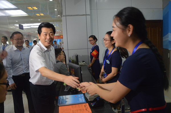 廖國勛在了解了旅游集散中心護航G20的工作后,來到門市,與客服人員和正在咨詢的游客一一握手、熱情交談。廖國勛說,G20杭州峰會辦得很成功,這不僅僅是杭州市民的奉獻,也凝聚了麗水人民的力量。習近平總書記對峰會也給予了高度肯定,還指出要大力弘揚浙江精神。這個精神就包含了在G20期間,全省人民都能心往一處使的大局意識,奉獻精神。我代表省委、省政府慰問大家,感謝大家在G20期間的辛勤工作和奉獻。