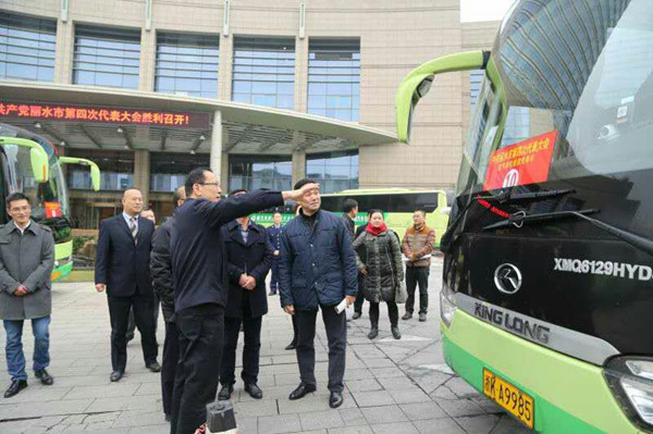 當(dāng)看到所有車輛都是統(tǒng)一的淺綠色,象征“綠水青山就是金山銀山”,每輛車前醒目的位置都放置著統(tǒng)一規(guī)格的黨代會(huì)制定用車紅牌子,車容整潔;所有駕駛員都統(tǒng)一穿著麗汽集團(tuán)司服,司乘人員精神飽滿時(shí),史書記大加贊賞,對車輛的準(zhǔn)備工作非常滿意。并走進(jìn)車?yán)铮退緳C(jī)師傅們進(jìn)行了親切的交談,勉勵(lì)大家認(rèn)真細(xì)致為本次黨代會(huì)用車做好服務(wù)工作。