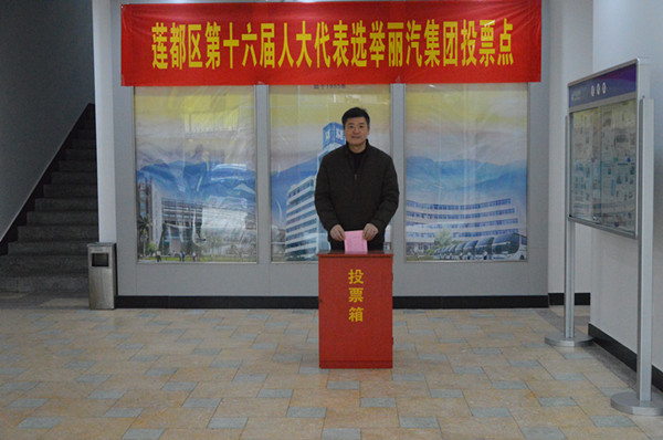 12月27日,蓮都區第十六屆人大代表市直第五選區開始投票選舉,麗汽集團以及下屬單位共設置6個投票點。從早上8:30開始,依法登記的1389名選民,按片區分別前往6個投票點投票。集團公司黨委書記、董事長葉茂、總經理薛和有等領導到機關片區投票點,投下了自己神圣的一票。
