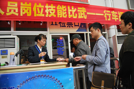 站售操作比賽11月14日晚,在旅游集散中心舉行。客運東站、客運西站分別派出4名選手參賽。經過角逐,客運西站封慧麗、客運東站魏麗、客運西站林莉分獲前3名。