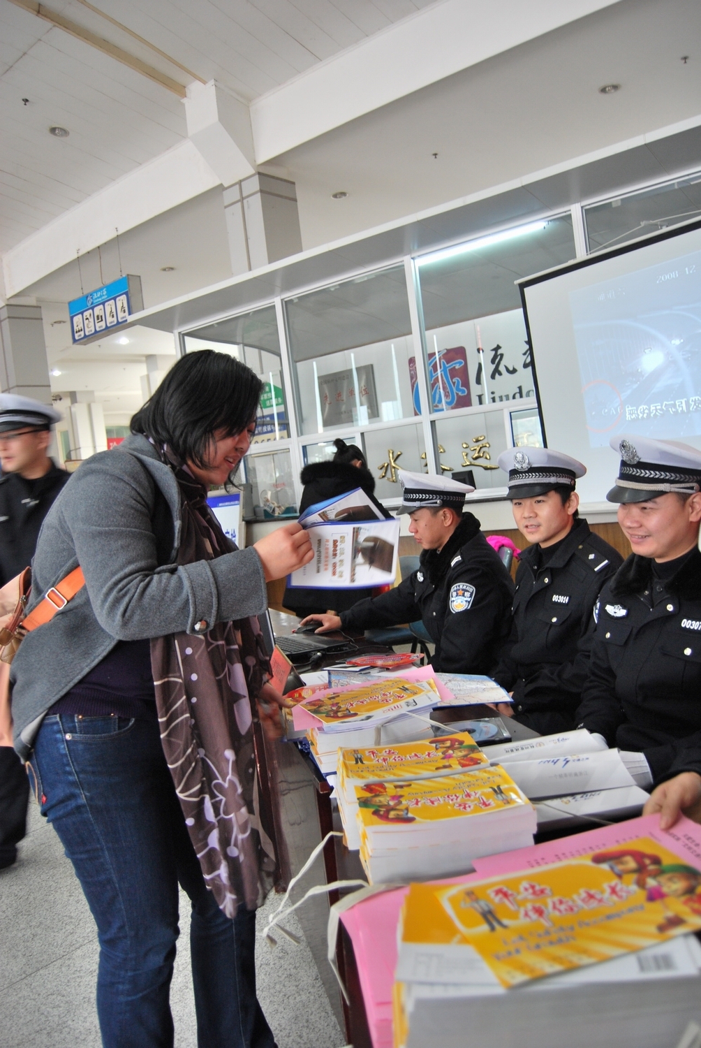 此次活動(dòng)以“關(guān)愛生命、文明出行”為主題,交警部門準(zhǔn)備了《平安伴你成長》、《道路交通事故警示錄》、《浙江省高速公路指南》等圖冊(cè)進(jìn)行發(fā)放,市交警隊(duì)的同志特意將《關(guān)愛生命、文明出行--全國實(shí)施“文明交通行動(dòng)計(jì)劃”倡議書》送到候車旅客手中,市運(yùn)管處、交通音樂頻道、高速交警支隊(duì)還進(jìn)行了春聯(lián)、“福”字和平安符現(xiàn)場(chǎng)贈(zèng)送,向過往旅客送出新年祝福。