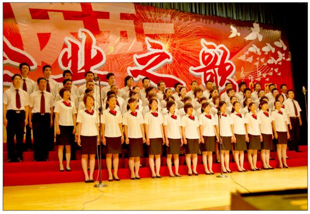 4月28日晚,全市慶祝五一國際勞動節企業歌演唱比賽暨勇克時艱先進表彰會在蓮都會議中心舉行。來自各縣(市、區)及市本級的10支合唱隊參加了企業歌演唱比賽。集團公司合唱隊演唱的《駕起綠谷的快車》、《愛我中華》兩首歌曲,獲得演唱會銀獎。同時《駕起綠谷的快車》獲企業歌創作二等獎。