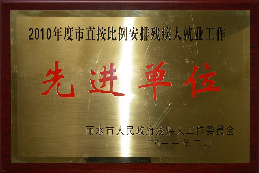 2010年度麗水市直按比例安排殘疾人就業工作先進單位