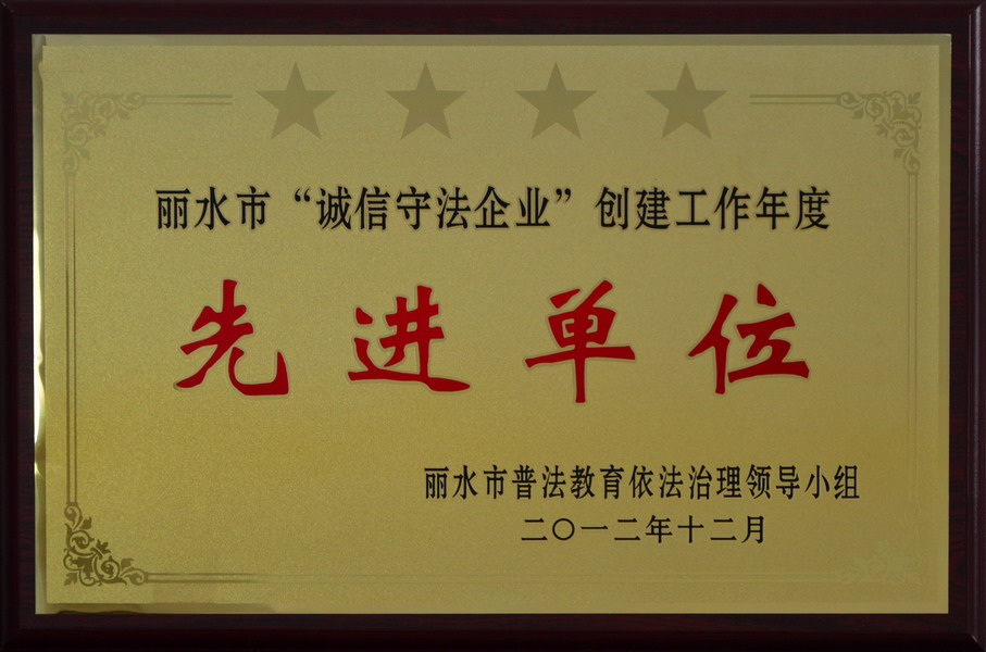 2012年麗水市“誠信守法企業”創建工作年度先進單位