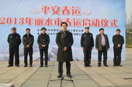 1月25日早上8:45分,“2013年麗水市平安春運啟動儀式”在西站舉行。麗水市副市長葛學斌、市交通運輸局局長葉沙平、副局長沈利文、集團公司黨委書記、董事長陳建敏、總經(jīng)理薛和有,以及市公安局交警支隊、高速交警麗水支隊、市公路局路政支隊、市運管運政支隊和集團公司相關單位人員出席了啟動儀式。儀式由麗水市政府副秘書長姚志強主持。葛學斌副市長、春運領導小組組長宣布2013年春運全面啟動。