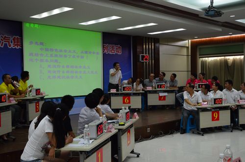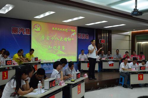 “十八大報告指出:要建設什么樣的馬克思主義執政黨------搶答開始。”隨著主持人的一聲令下,最吸引眼球的搶答環節開始了。10支代表隊快速摁下搶答器,這里比的不僅是黨史知識,更是快速反應的能力。40道搶答題,有的隊反應快速,答題準確,加上10分;有的隊答題心切,違規搶答,被倒扣分數;有的隊搶到了,答題不是很準確,也被倒扣分數。臺下黨員隨著他們的表現一會會心一笑,一會兒加油鼓掌,全場氣氛熱烈。