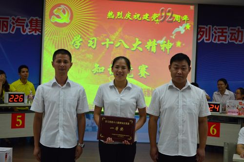 本次學習十八大精神知識競賽,共有來自集團公司機關和下屬基層黨支部的10支代表隊參賽。經過緊張激烈的角逐,客運西站黨支部代表隊以238分獲得一等獎;機關黨支部代表隊和旅游集散中心黨支部代表隊獲得二等獎;南明物流黨支部代表隊、客運東站黨支部代表隊和檢測站黨支部代表隊獲得三等獎,其他黨支部代表隊獲優勝獎。
