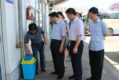 李根林副局長一行先后實地察看了物流場地、快客修理車間、洗車場、停車場、發車區、候車廳、衛生間、站前廣場等處,對創衛辦二季度考核要求的整改工作進展情況進行了詳細檢查。李副局長對整改情況給予了肯定,并對我站創衛工作提出了寶貴意見,希望我們加快速度,把衛生間通風不暢、地面積水等難點問題徹底的解決好。