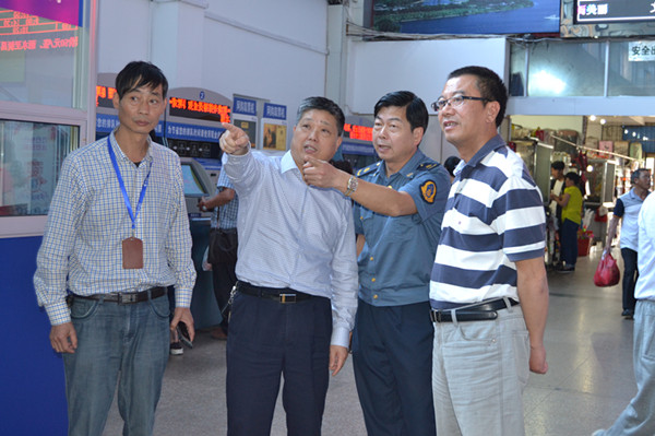 5月24日,省運管局副局長方文理、省交警總隊政委徐金華等相關領導到客運東站檢查指導反恐安保工作。一行人認真查看了售票廳,行包安檢處、候車室、行李房等重點區域,詳細了解了客運東站對G20峰會反恐安保所采取的相關措施。方文理副局長對我站的反恐安保所做的工作表示滿意,對實施的站場封閉式管理給予了肯定,他強調車站是人流密集的場所,必須落實最嚴的安保措施,加強對重點部位、重點場所的監管力度,做到萬無一失。要切實將安保工作做到更精細、更到位、更高效,打贏G20峰會安保攻堅戰。