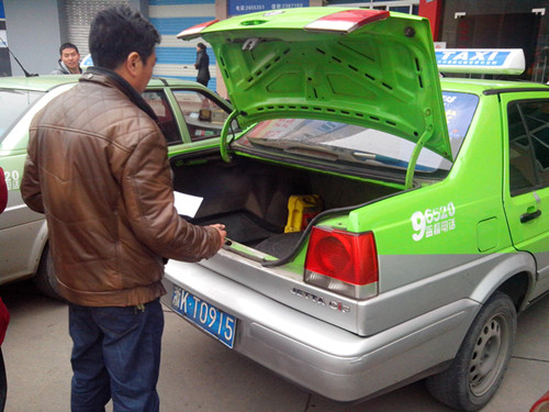 長(zhǎng)運(yùn)出租車分公司的管理員正在進(jìn)行車輛技術(shù)狀況檢查