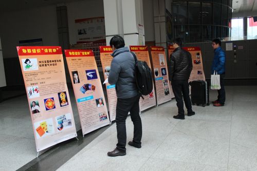2月11日上午,萬象街道,鳳凰社區聯合客運西站在西站候車廳開展禁毒宣傳活動。宣傳點上的一些仿真毒品引起旅客的關注,一位姓陳的旅客說:“這些毒品還從來沒看到過,了解一下有好處,毒品是害人害己的東西,堅決不能碰,要遠離毒品,珍愛生命”。