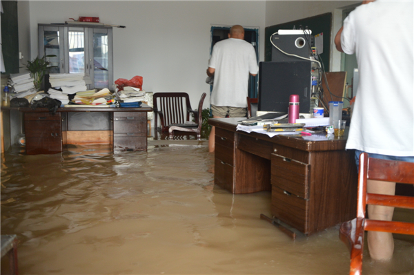 站外創(chuàng)衛(wèi)辦的值班用房被大水沖進(jìn)了車站