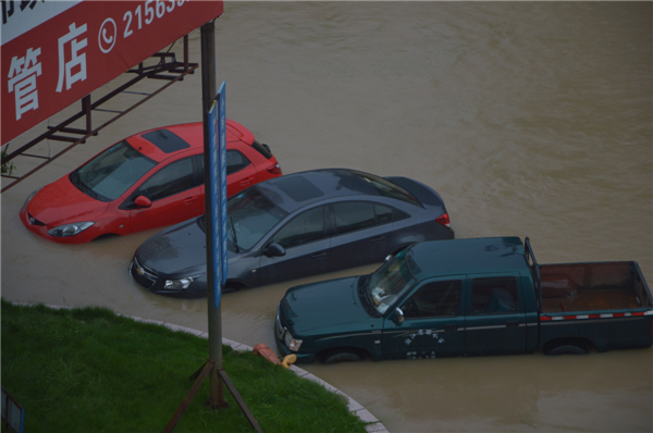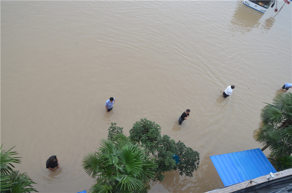 集團(tuán)公司公會(huì)主席呂麗君走到小轉(zhuǎn)盤路口時(shí),大水已經(jīng)沒過大腿