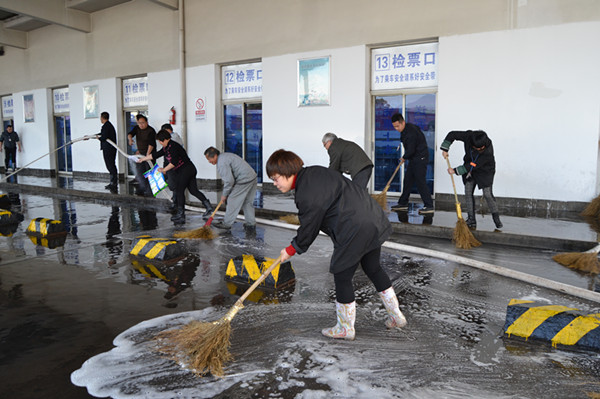 1月20日下午,東站經(jīng)理室?guī)ьI(lǐng)東站黨(團(tuán))員志愿者進(jìn)行了站內(nèi)衛(wèi)生大掃除。在活動現(xiàn)場,大家干勁十足,分工合作,黨(團(tuán))員志愿者們充分發(fā)揚先鋒模范、不怕苦不怕臟的精神,對發(fā)車位以及站場地面進(jìn)行了徹底的清理,經(jīng)過大家的共同努力,發(fā)車位煥然一新,地面整潔干凈。