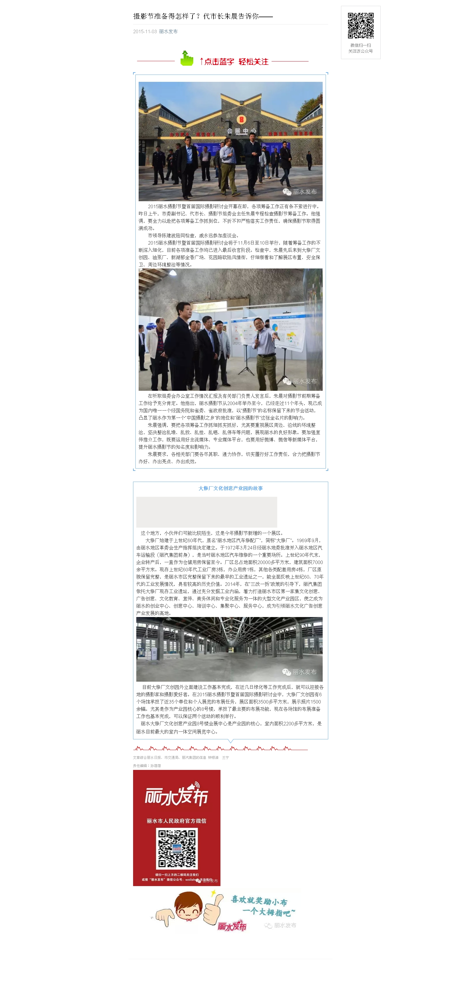 【麗水發(fā)布公眾微信】攝影節(jié)準(zhǔn)備得怎樣了?代市長朱晨告訴你--