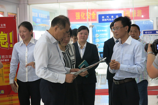 葉建國對旅游集散中心進(jìn)行實(shí)地考察,聽取了董事長葉茂、總經(jīng)理葉劍飛情況匯報(bào)后,對集散中心在車輛安全方面所做的工作表示高度肯定,對不足之處也提出了意見。葉建國指出,希望旅游集散中心在做好車輛安全工作的同時(shí),加強(qiáng)導(dǎo)游隊(duì)伍的安全培訓(xùn),旅游突發(fā)事件應(yīng)急演練。充分運(yùn)用車載視頻設(shè)備播放安全注意視頻,引導(dǎo)游客安全出行。充分利用公司安全管理技術(shù)和先進(jìn)手段,扎扎實(shí)實(shí)做好旅游安全工作,切實(shí)把好旅游安全關(guān)。