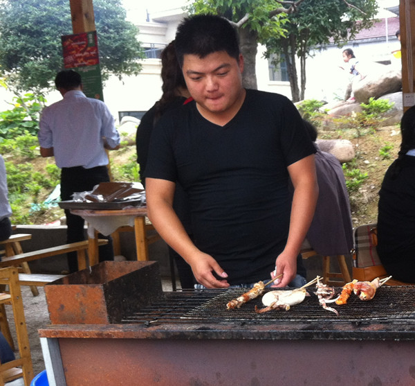 5月23日,一大早大家就趕到公司集中,清點完人數后我們就往目的地出發了。到達目的地后大家就開始分工準備我們豐盛的午餐,包水餃的包水餃、燒烤的燒烤,大家伙都開始忙開了。一大群小姑娘圍著大姐學習怎么包水餃,小姑娘們就是心靈手巧,不一會功夫,肚子鼓鼓的水餃就包好了,就等著水開下鍋了。在女同胞學包水餃的同時,男同胞也在準備著美味的燒烤。胡重慶和孫秀峰是我們的專業燒烤男,炎熱的天氣,加上烤爐炭火的熏蒸,汗如雨下,但他們一直“堅守崗位”,認認真真的為大家準備美味的午餐。男同胞們不僅態度認真,技術也是一流的,燒烤不論是賣相還是味道都是超贊。很快,一大鍋翻滾的水餃起鍋了,一盤盤噴香的燒烤也擺上桌了,大家圍著桌子大快朵頤。自己包的水餃和燒烤總覺得特別的美味,一大鍋的水餃一下就被搶空了,很多女生還因為動作慢沒搶到急得直跺腳。