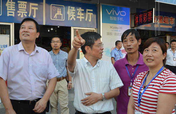陳建波部長正在察看西站售票廳