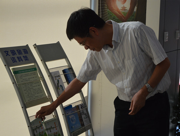 陳建波部長仔細翻看文明旅游宣傳材料