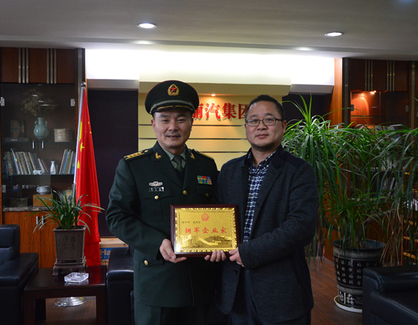 今年7月,集團(tuán)公司董事長葉茂被省民政廳和省軍區(qū)政治部評(píng)為“擁軍企業(yè)家”。今天(23日)下午,麗水軍分區(qū)政治部主任張寶藏一行專程到集團(tuán)公司,代表省民政廳和省軍區(qū)政治部向集團(tuán)公司董事長葉茂送上“擁軍企業(yè)家”牌匾,并對(duì)麗汽集團(tuán)積極安置退伍軍人、烈軍屬等工作表示感謝,對(duì)麗汽集團(tuán)在軍事戰(zhàn)備工作上取得的成績表示肯定,并對(duì)麗汽集團(tuán)今后的人民武裝常態(tài)化工作進(jìn)行了探討。