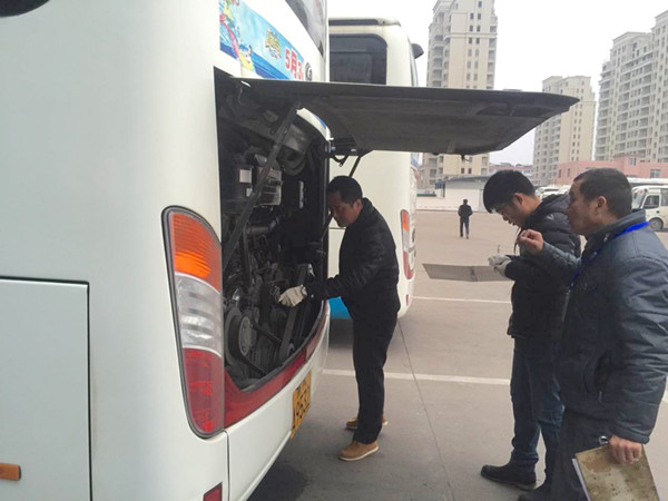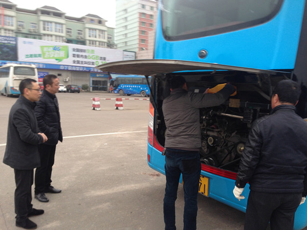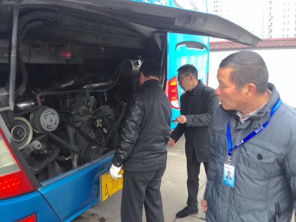 為積極響應(yīng)集團(tuán)公司關(guān)于切實(shí)做好強(qiáng)寒潮天氣安全生產(chǎn)工作,1月20日上午,長(zhǎng)途運(yùn)輸分公司梁巍經(jīng)理、王斌副經(jīng)理組織安全稽查科、機(jī)務(wù)技術(shù)科人員,結(jié)合每月的愛(ài)車(chē)?yán)z查對(duì)單位所屬公營(yíng)車(chē)輛發(fā)動(dòng)機(jī)倉(cāng)、電瓶、輪胎,車(chē)上的安全設(shè)施進(jìn)行防凍措施的重點(diǎn)檢查,要求駕駛員及時(shí)添加防凍液,對(duì)加水的車(chē)輛,要求回場(chǎng)后一律放凈水箱里的水,確保營(yíng)運(yùn)車(chē)輛技術(shù)狀況良好。