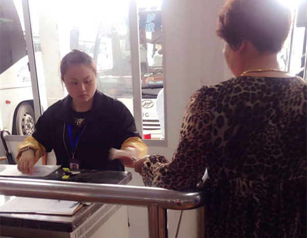 等到20:33分,汽車終于進站。洪麗立即走到檢票臺,熟練地開始拿票、掃描、核對。檢票完,她發(fā)現(xiàn)還有一名旅客尚未上車。