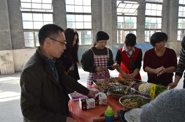 這次活動提倡女工人人動手,共同參與“煮”婦活動,包五彩餃子。早上9點不到,場地內已異常熱鬧,按預定的分組形式,“煮”婦們齊動手,和面、穿烤串、包餃子,很快顏色多樣、形狀各異的餃子也紛紛的在大家眼前呈現,“你綠色的好看”、“你的餃子做的圓嘟嘟的真可愛”、“你教我怎么搟皮吧”、“這個餃子大的”…… 你到我組看一看,我到你組瞅一瞅,大家互相探討包餃子的技術,互相嬉鬧,歡笑聲此起彼伏。