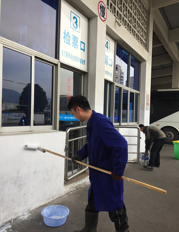 春節的腳步越來越近,為了提升站場的整體形象。1月13日下午亮點,東站黨員志愿服務隊的隊員們在支部書記江小華的帶領下對候車廳、過道、辦公室走廊、樓梯口等墻壁進行粉刷。