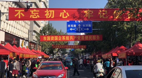 早上8點多,國資委下屬的20多家企業(yè)就在中山街南段設(shè)好攤點,為市民群眾服務(wù)。
