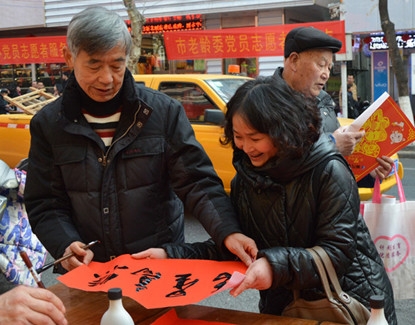 雖然時節(jié)已過立春,但農(nóng)歷臘月十九(2月7日)的早上還是寒意逼人,麗汽集團(tuán)的黨員們卻一早就來到中山街路段,面向廣大群眾展開了春節(jié)班車時刻咨詢、汽車銷售維修服務(wù)和送春聯(lián)、送福字三項服務(wù)。退休老黨員蘭延生、陳根松、王法根三人更是現(xiàn)場潑墨揮毫,冒著嚴(yán)寒為現(xiàn)場的群眾書寫春聯(lián),送去新春祝福。短短半天時間里,黨員們共發(fā)放春運(yùn)班車時刻表、汽車銷售維修資料500份,解答咨詢76人次,贈送福字1800張,為群眾現(xiàn)場書寫春聯(lián)450幅,惠及群眾1500人次。