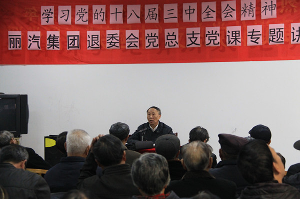 為把學(xué)習(xí)貫徹黨的十八屆三中全會(huì)精神引向深入, 11月28日麗汽集團(tuán)離退委黨支部特邀請(qǐng)麗水黨校柯鑒清副教授給100余位黨員上了一堂以“學(xué)習(xí)十八屆三中全會(huì)精神”為主題的黨課,從中國的形勢、會(huì)議內(nèi)容,行政體制改革和轉(zhuǎn)變政府職能等方面進(jìn)行宣講,進(jìn)一步深化了離退休黨員對(duì)全會(huì)精神的理解。