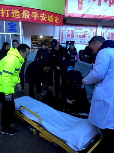 16:20,警察和救護人員都相繼趕到候車室,醫生對生病旅客作了初步診斷,警察也在旅客身上找到了身份證,想方設法和他家人取得了聯系。余林峰等人協助醫生將旅客抬上了擔架,并一直護送到救護車上。